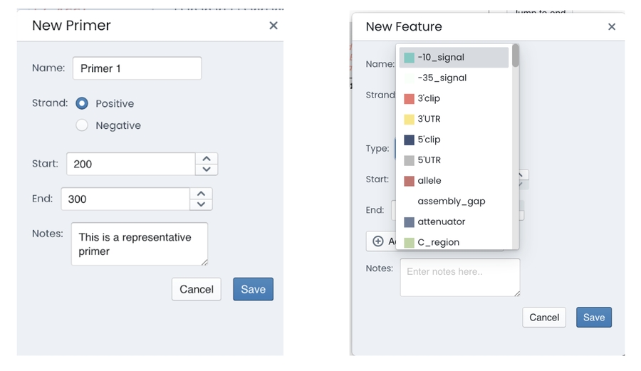Colabra enables users to preview primer sequences right within your experimental notes, edit them, and manage all properties, primers, protein translations, cut sites, and ORFs.